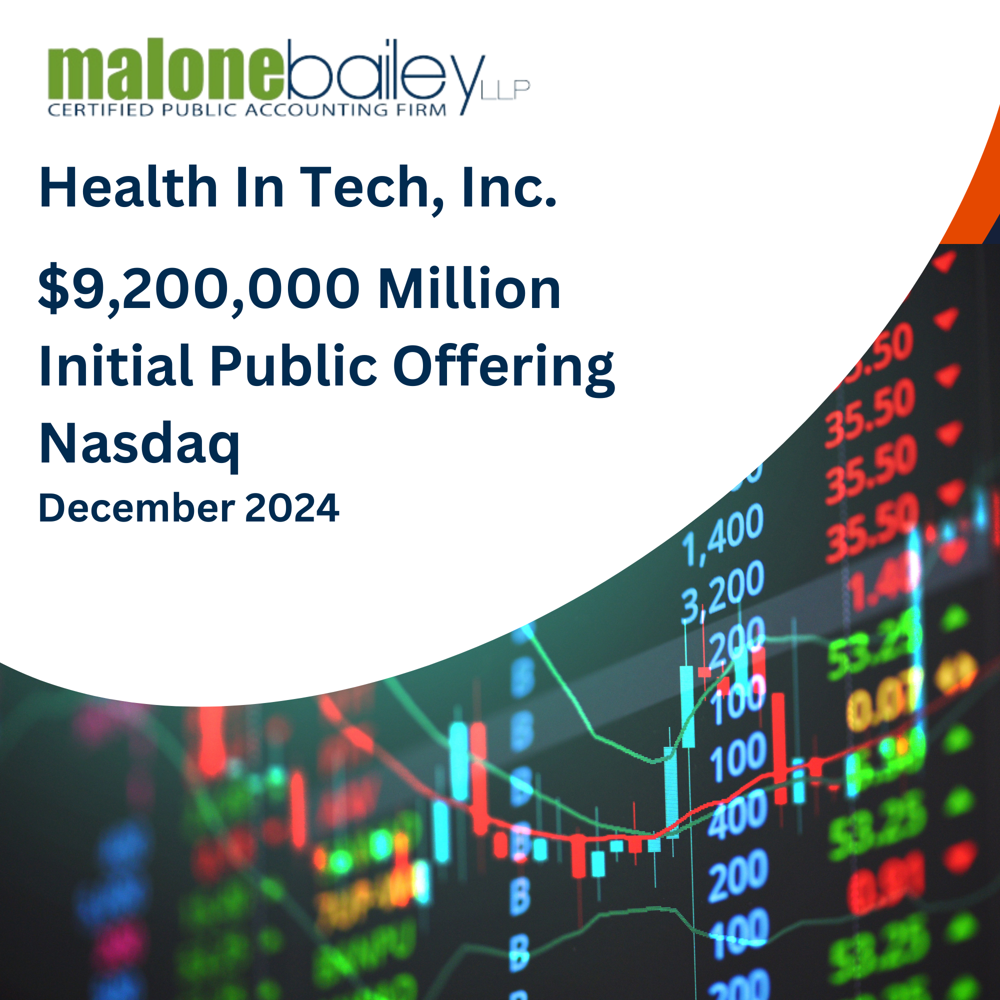 Below is a sampling of Initial Public Offerings (IPOs) in which MaloneBailey, LLP served as the auditor of record on the S-1 or F-1 filing. For more information about these IPOs, please search the company's filings on www.SEC.gov.