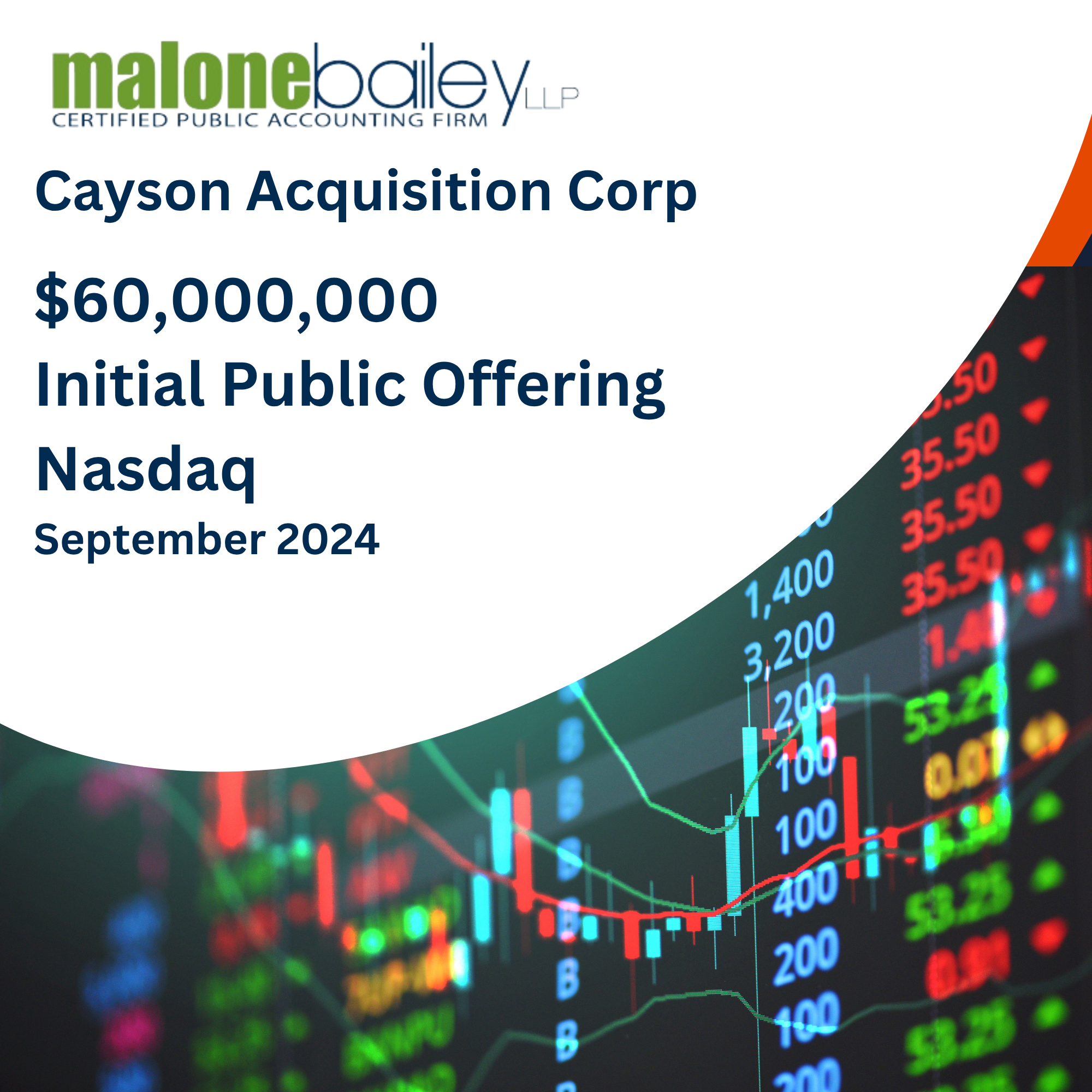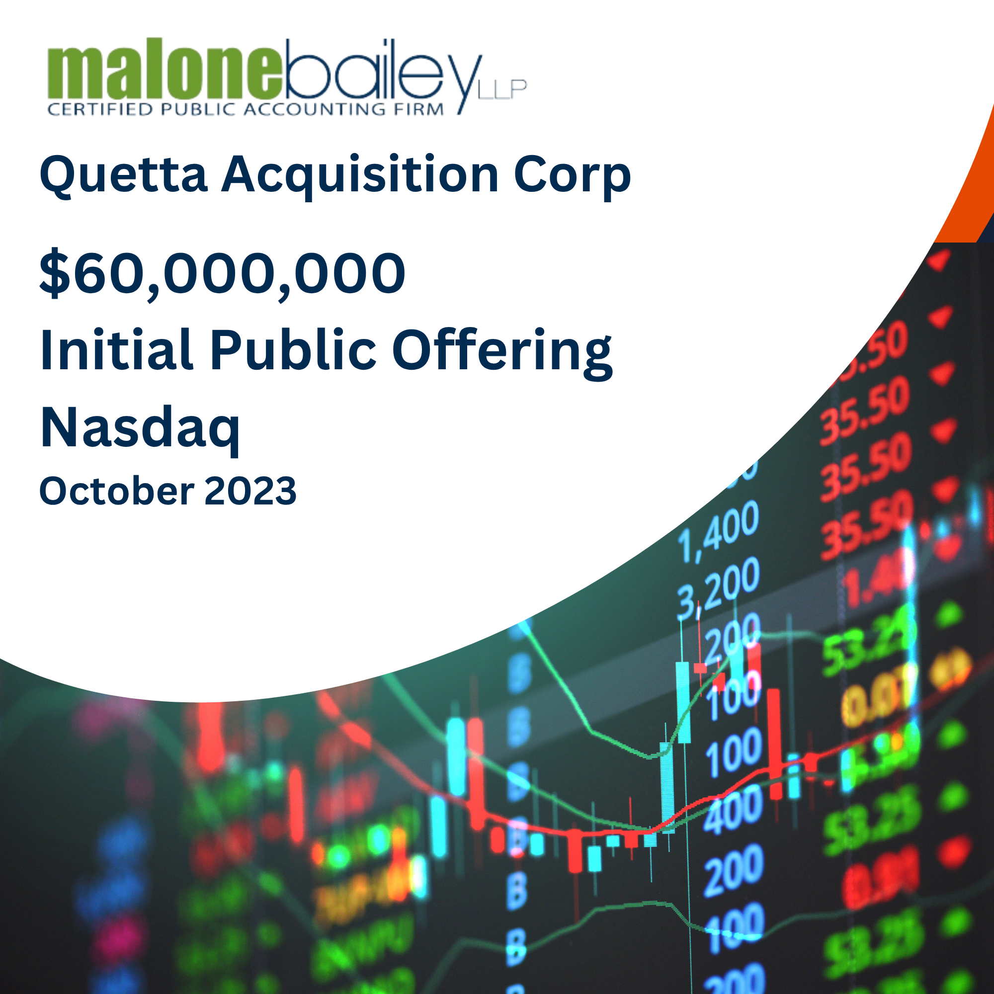 Below is a sampling of Initial Public Offerings (IPOs) in which MaloneBailey, LLP served as the auditor of record on the S-1 or F-1 filing. For more information about these IPOs, please search the company's filings on www.SEC.gov.