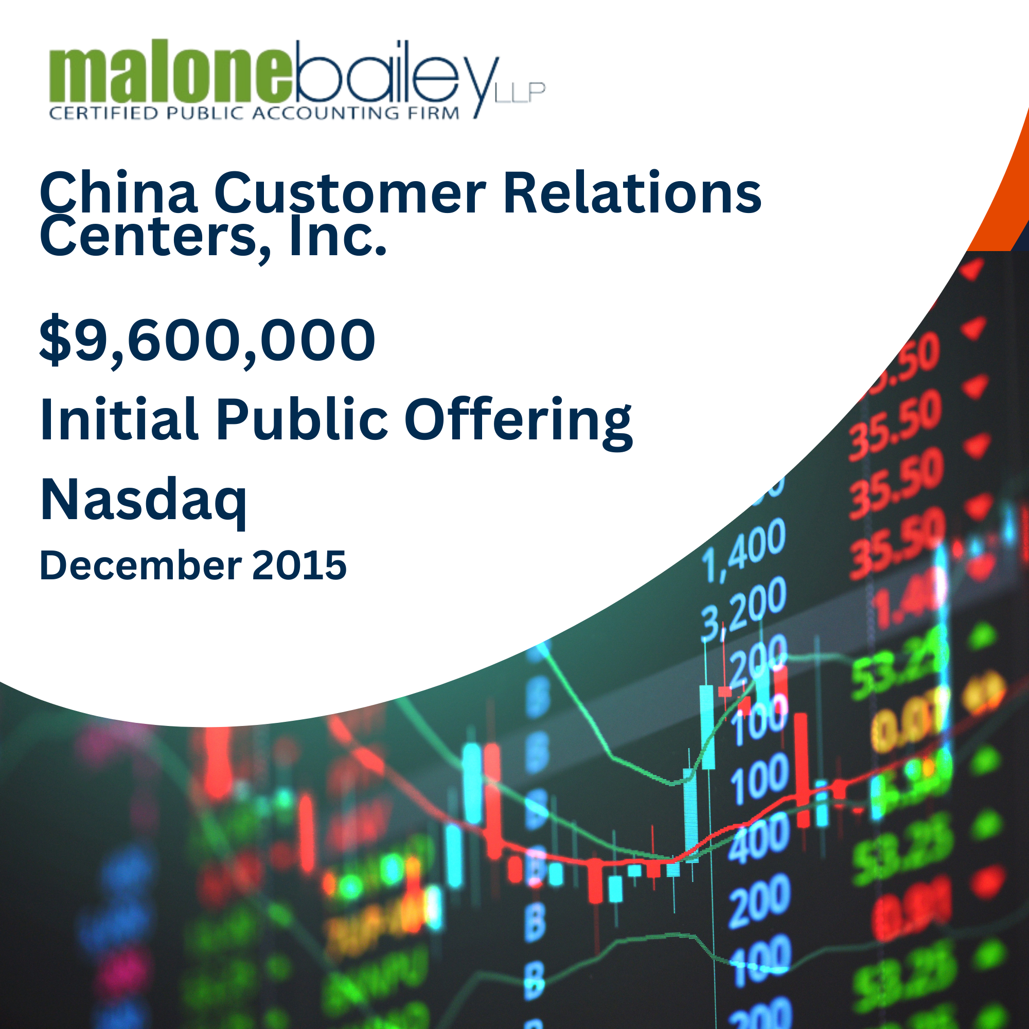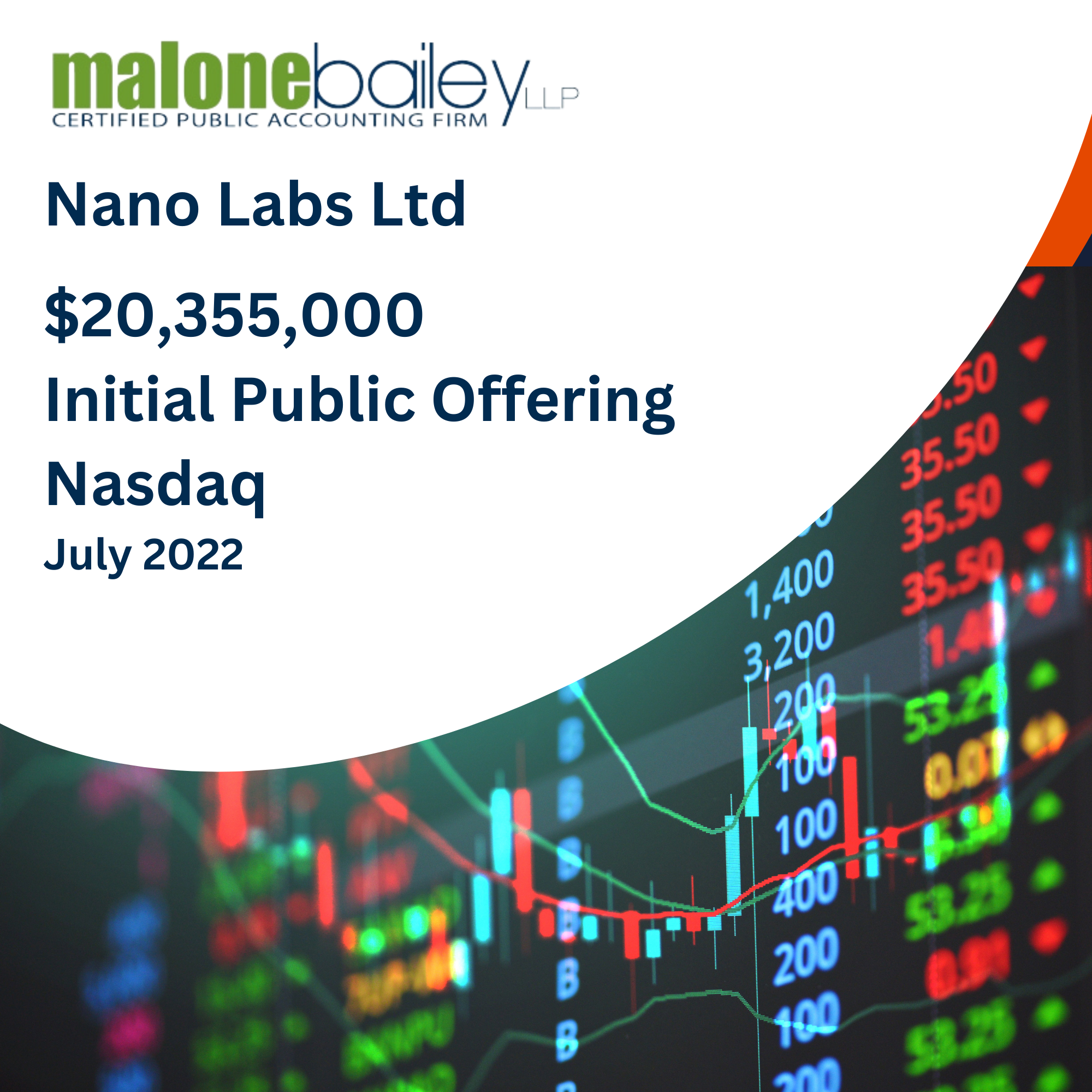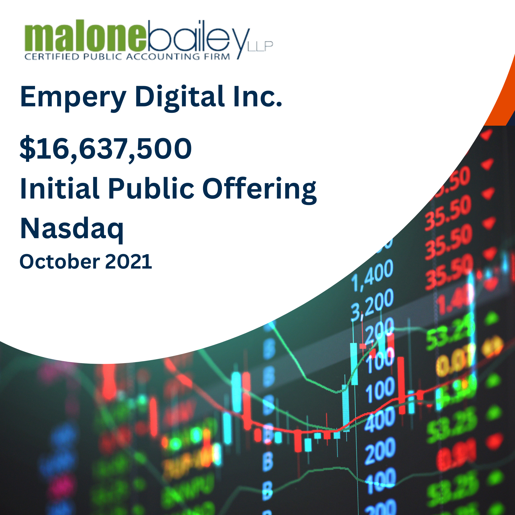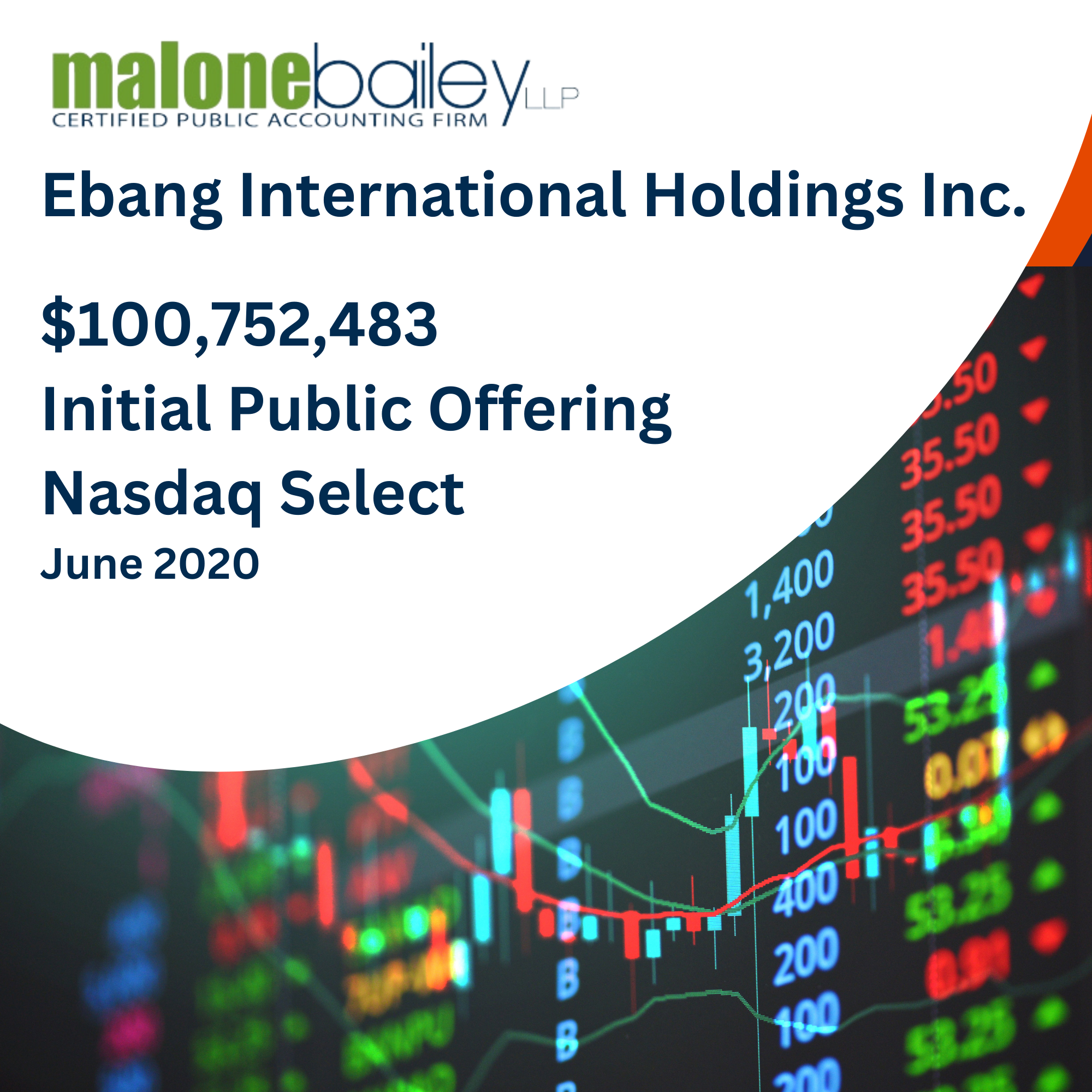Below is a sampling of Initial Public Offerings (IPOs) in which MaloneBailey, LLP served as the auditor of record on the S-1 or F-1 filing. For more information about these IPOs, please search the company's filings on www.SEC.gov.